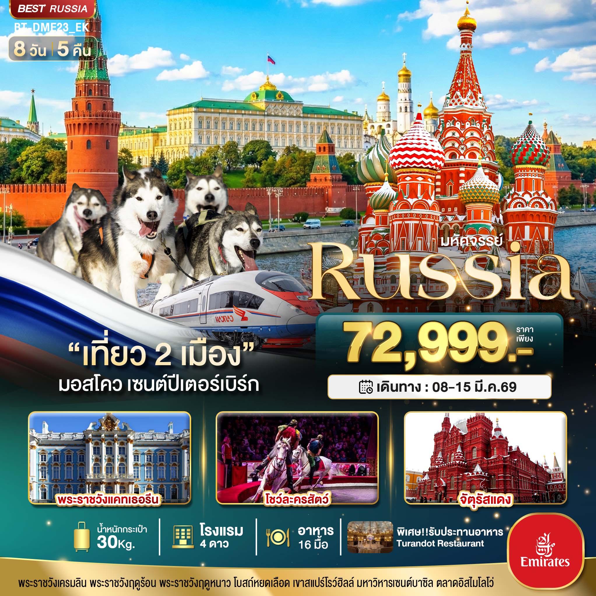 มหัศจรรย์..RUSSIA มอสโคว เซนต์ปีเตอร์เบิร์ก เที่ยว 2 เมือง 8 วัน 5 คืน